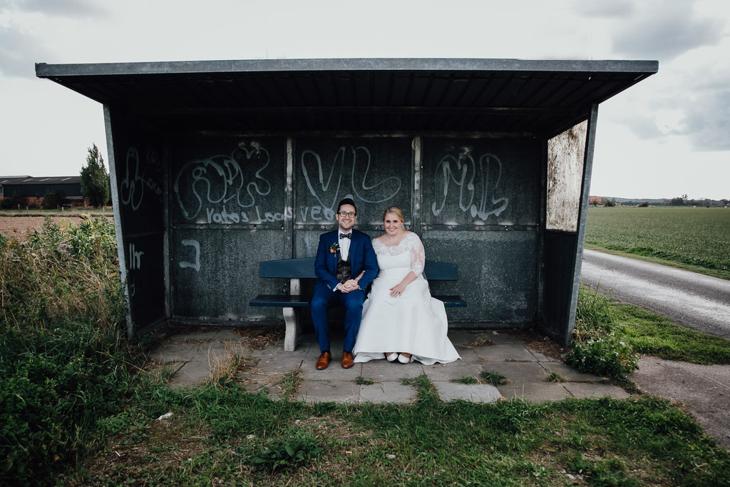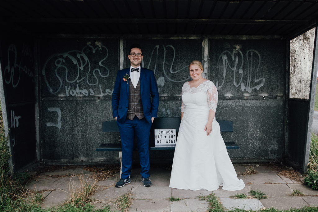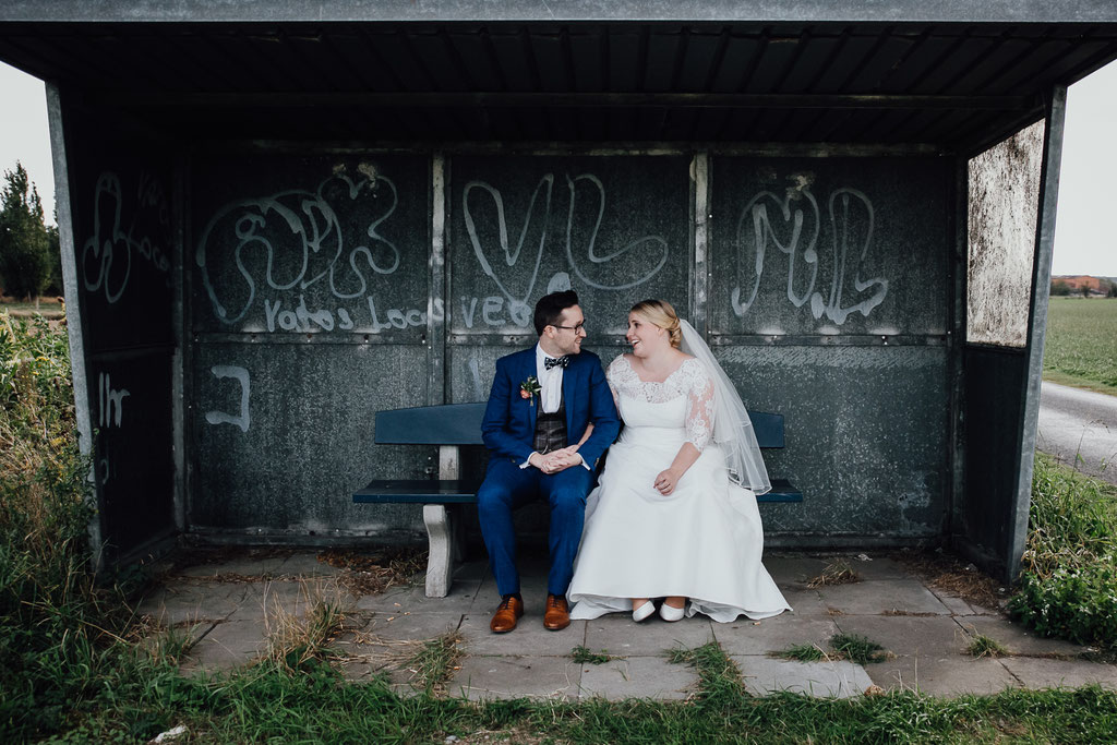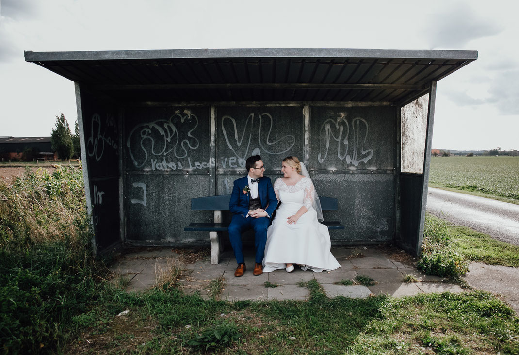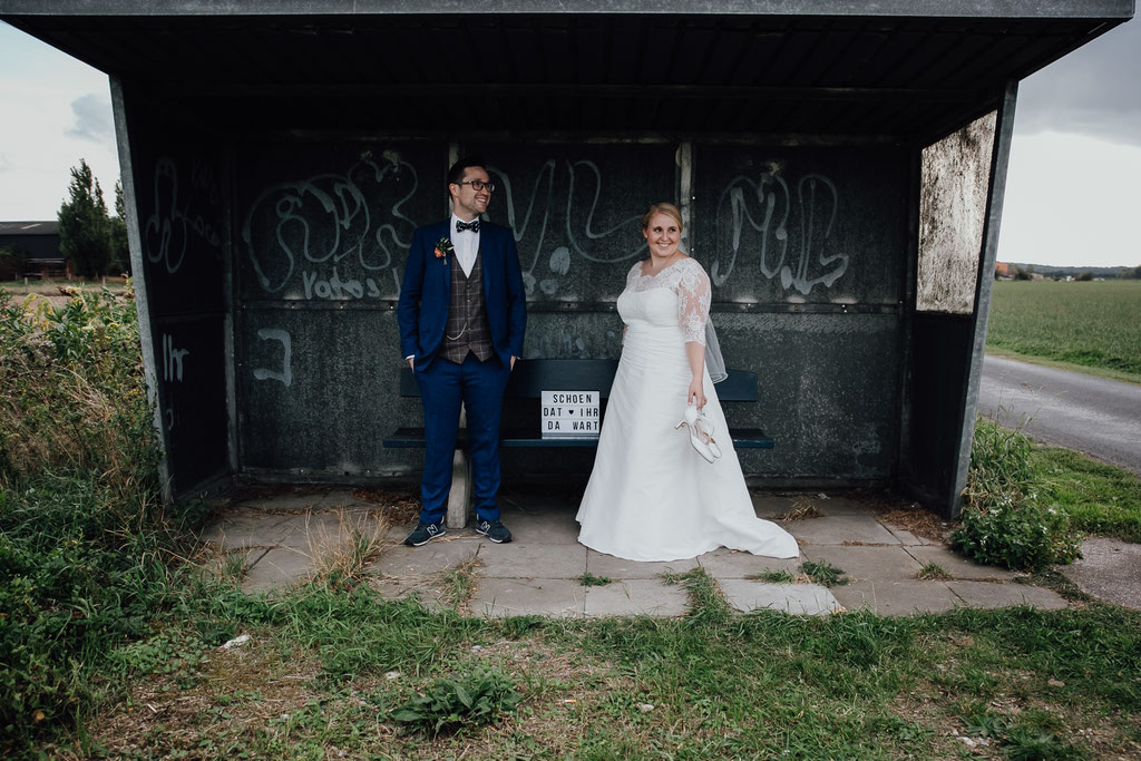 Und inmitten von Windrädern und Feldern fanden wir eine alte Bushaltestelle, die wir sofort ins Herz für das Paarshooting geschlossen haben.